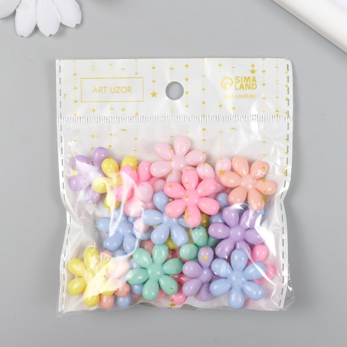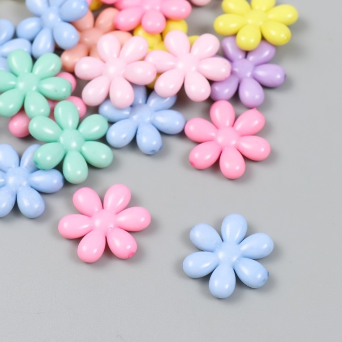 Декор для творчества пластик "Цветочки" цветные набор 25 шт 0,4х2,3х2,3 см