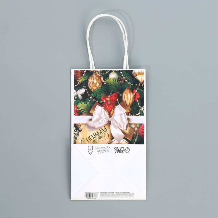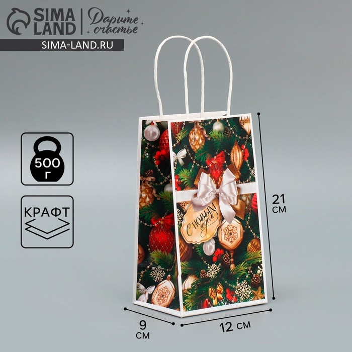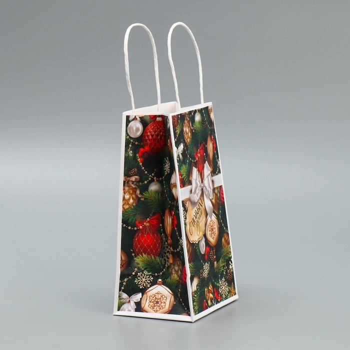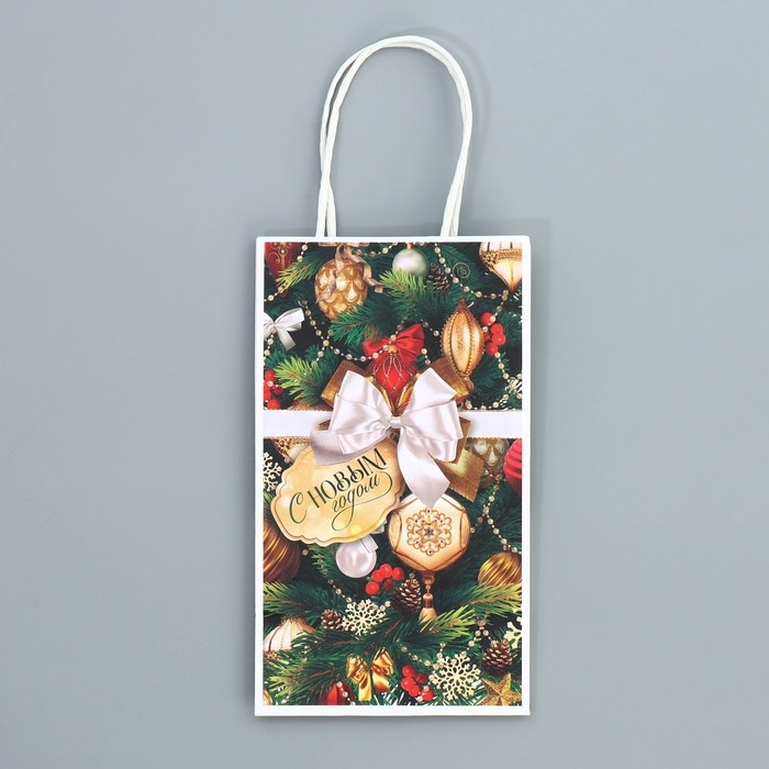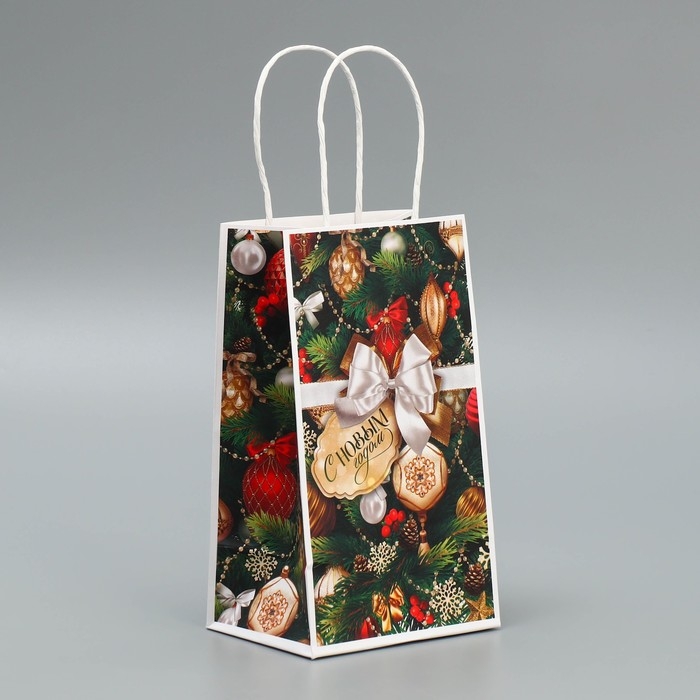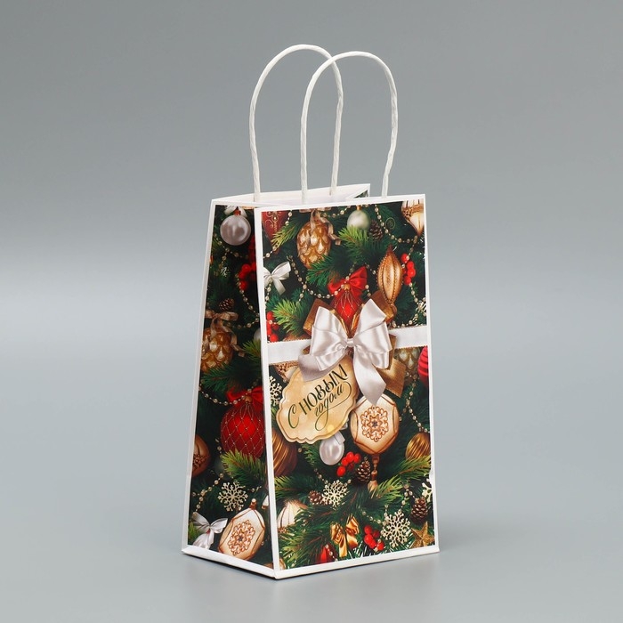 Пакет подарочный новогодний крафтовый «Игрушки», 12 х 21 х 9 см, Новый год