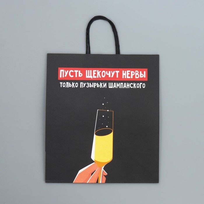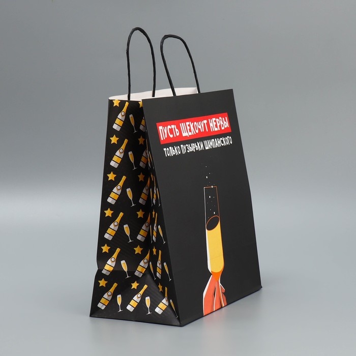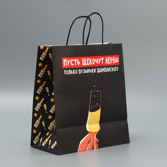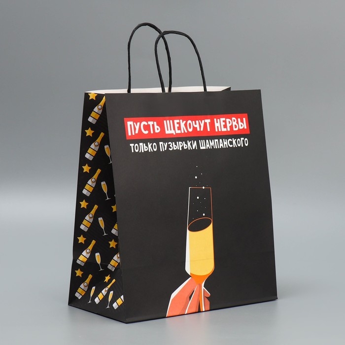 Пакет подарочный новогодний крафтовый «Шампанское», 28 х 32 х 15 см, Новый год