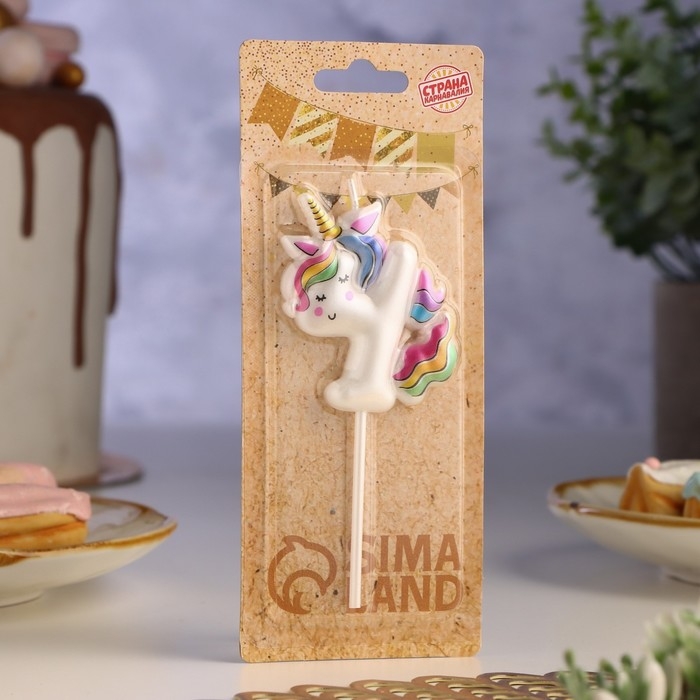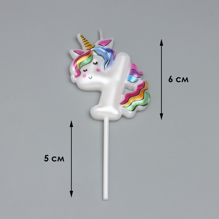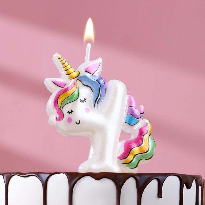 Свеча в торт "Единорог", цифра "4", 6 см