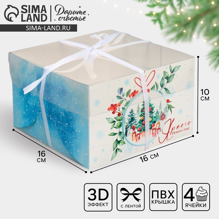 Коробка для капкейка «Яркого Нового года», шар, 16 х 16 х 10 см, Новый год