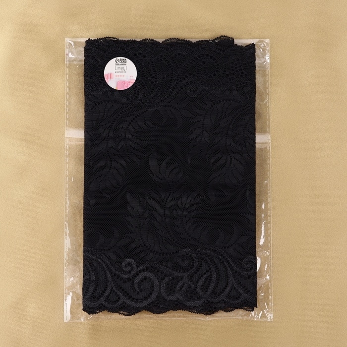 Кружевная эластичная ткань, 200 мм × 2,7 ± 0,5 м, цвет чёрный