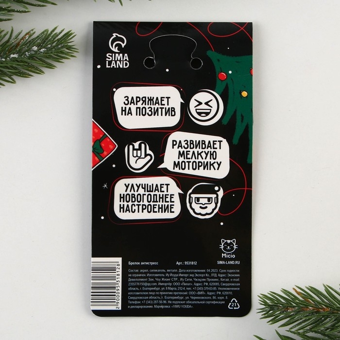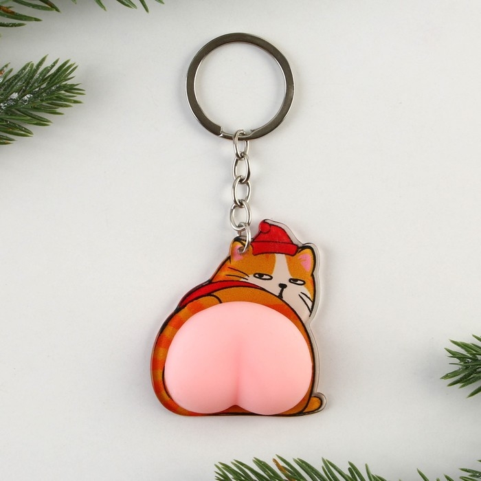 Брелок новогодний, для ключей, мялка «Кот - Новый год» 4,8 х 11,4 см