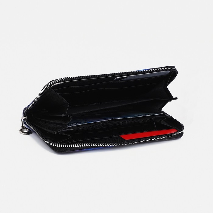 Кошелёк на молнии, отдел для карт, для монет, цвет чёрный/синий