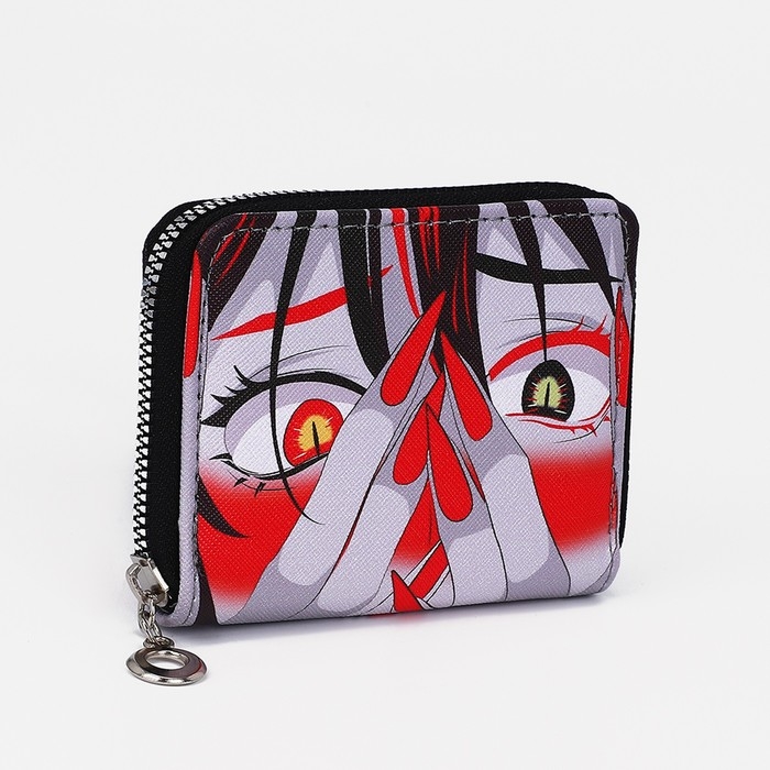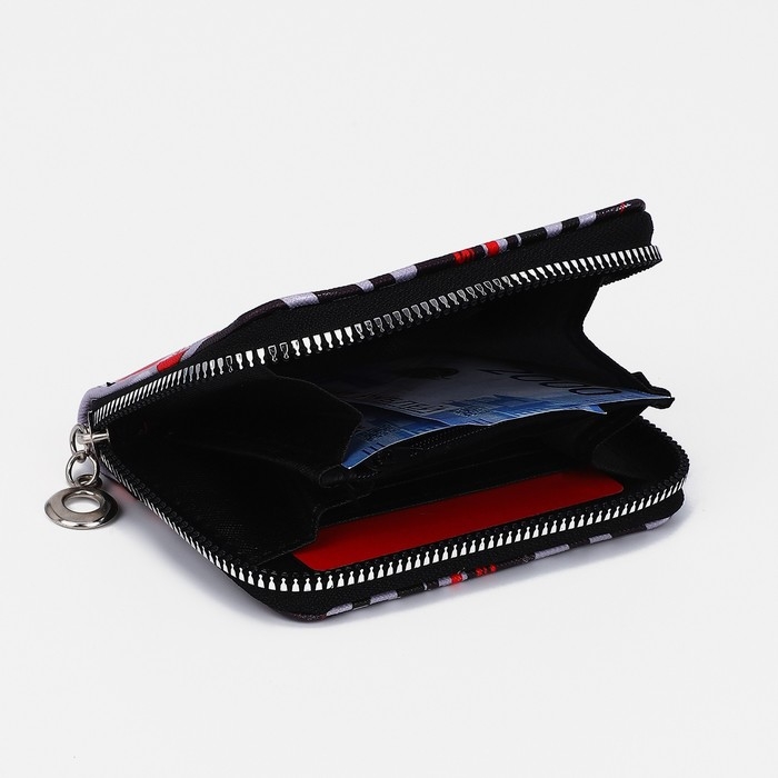Кошелёк на молнии, отдел для карт, для монет, цвет чёрный/красный