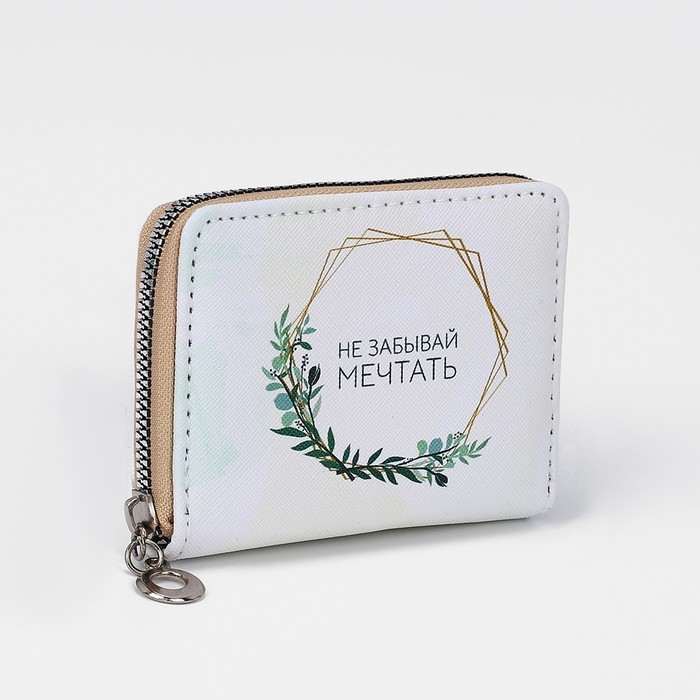 Кошелёк на молнии, отдел для карт, для монет, цвет зелёный