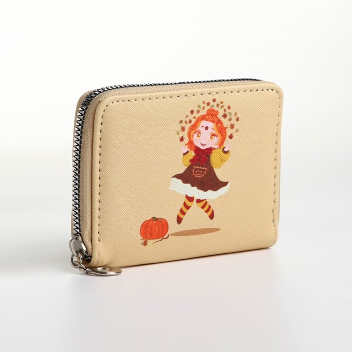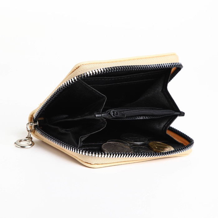 Кошелёк на молнии, отдел для карт, для монет, цвет бежевый