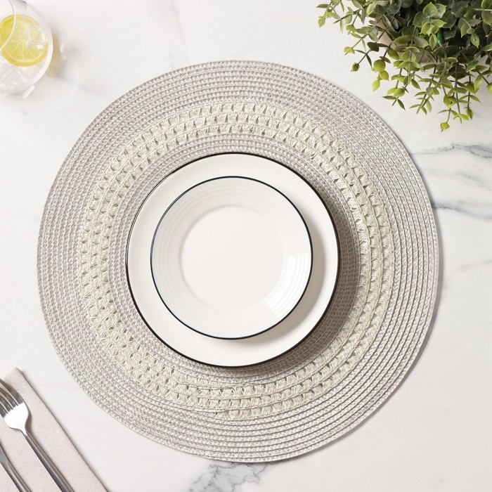 Салфетка сервировочная на стол «Манифик», d=38 см, цвет серебряный