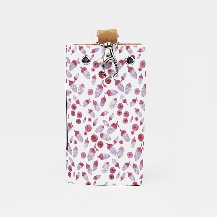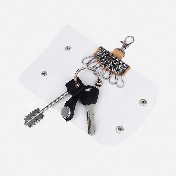 Ключница на кнопках, длина 10,5 см, 6 карабинов, цвет белый/розовый