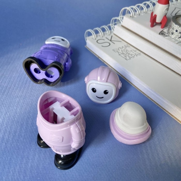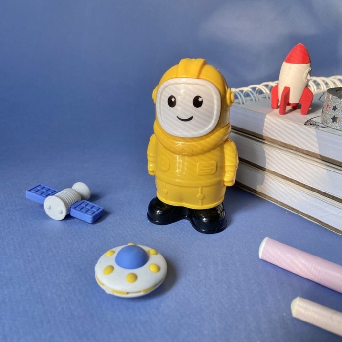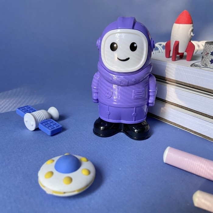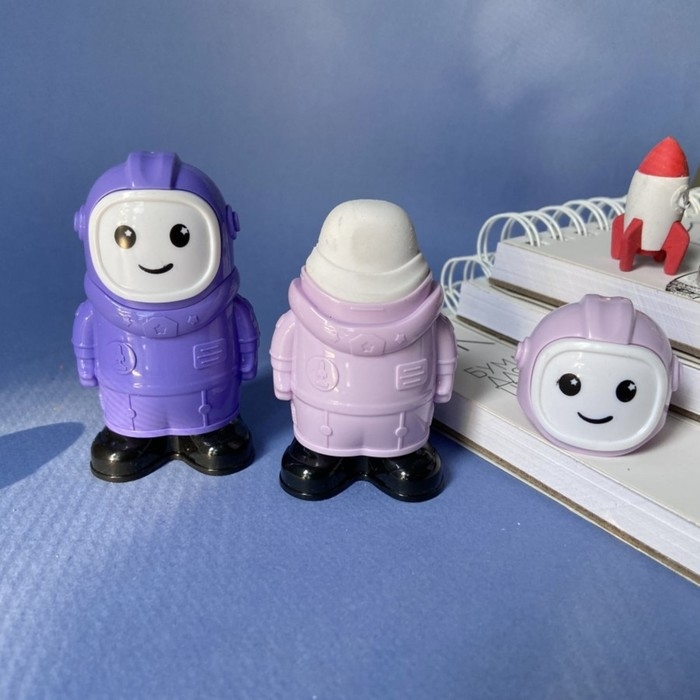 Точилка 2 отверстия с контейнером "Космонавт", с ластиком, МИКС