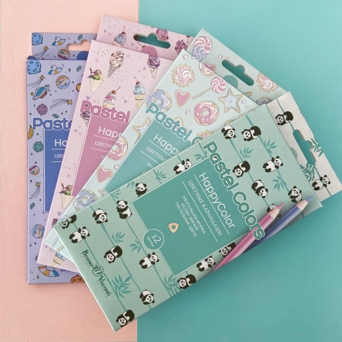 Карандаши цветные 12 цветов BrunoVisconti HappyColor "Пастельные", трёхгранные, МИКС