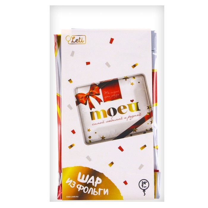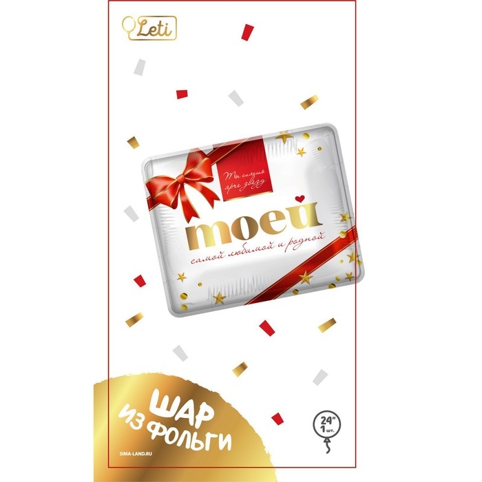Фольгированный шар в виде коробки конфет станет отличным дополнением к подарку на День рождения или 8 Марта. На шаре написаны фразы «Моей самой любимой и родной» и «Ты сияешь ярче звёзд», которые помогут выразить свои чувства к любимой.