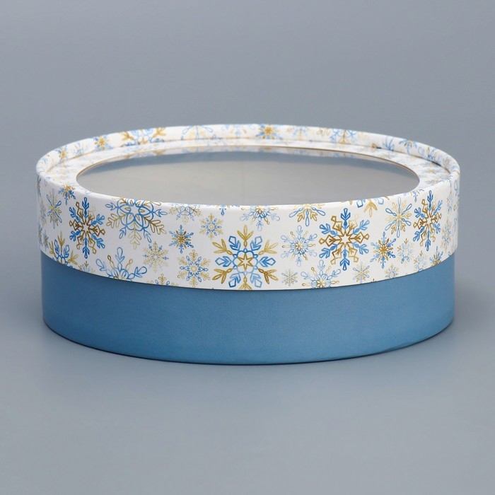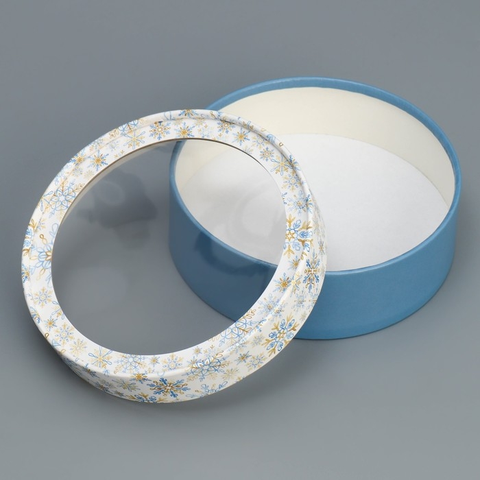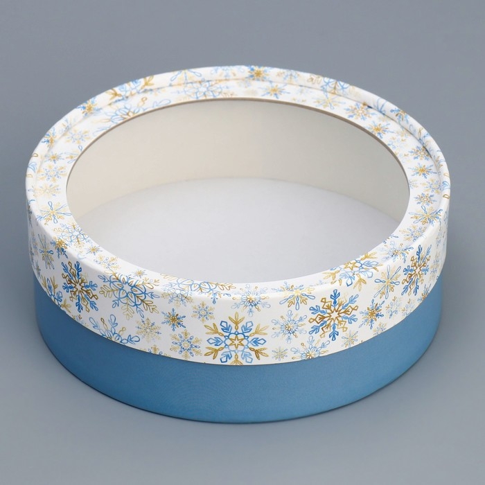 Коробка для макарун тубус с окном «Снежинки», 16 х 16 х 5 см, Новый год
