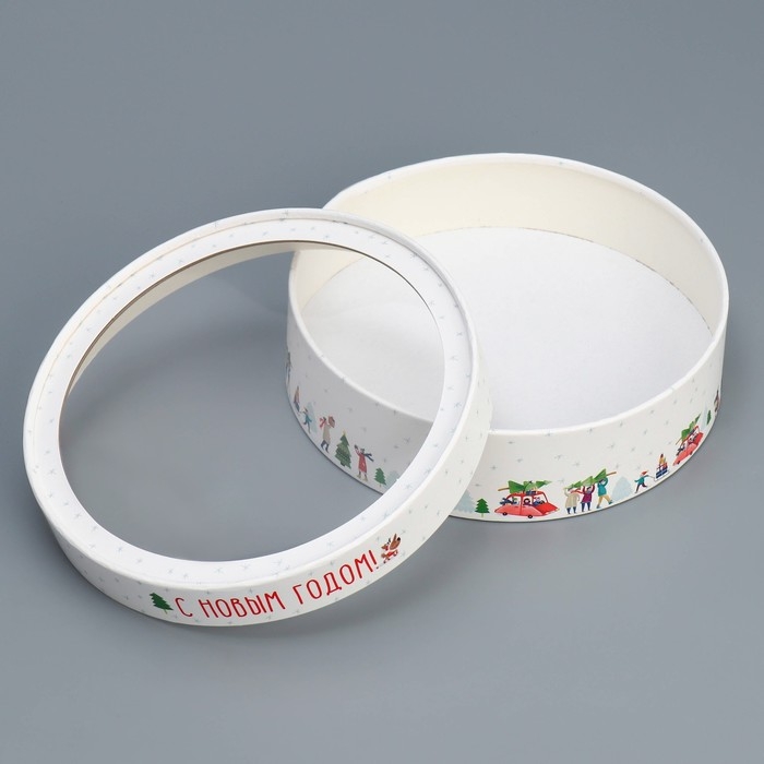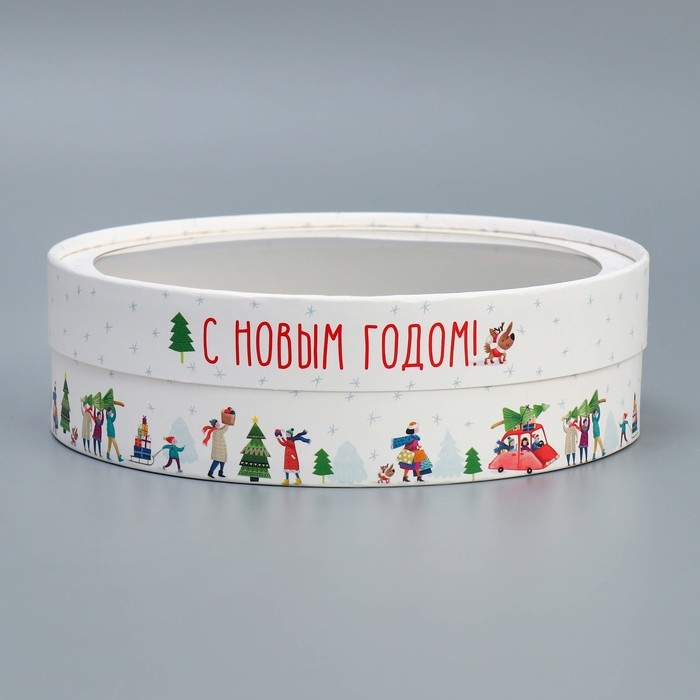 Коробка для макарун тубус с окном «С Новым годом», 20 х 20 х 5 см, Новый год