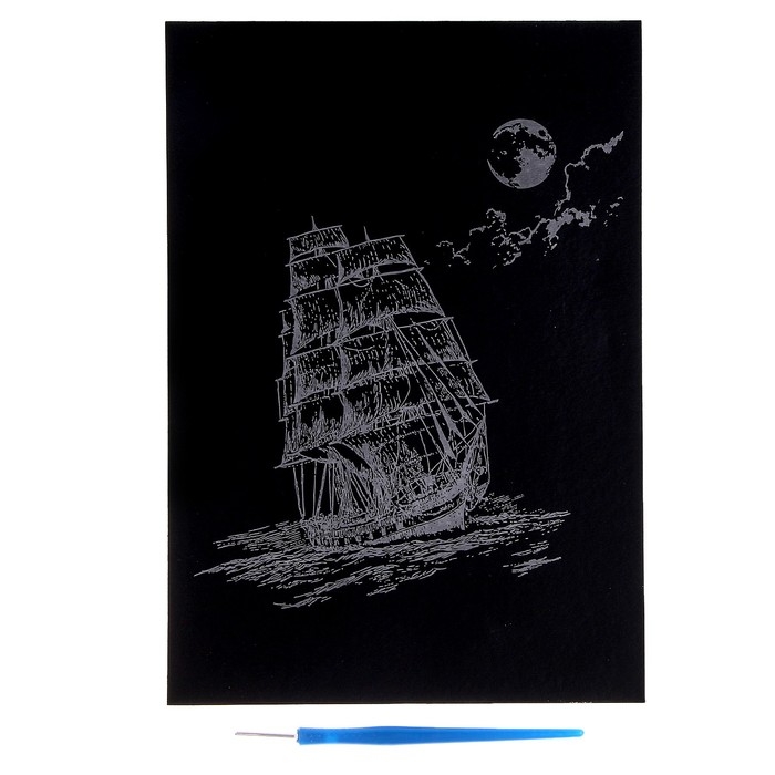 Гравюра «Торговый корабль» серебро
