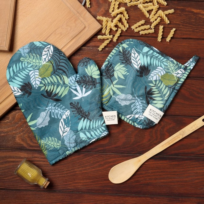 Набор кух. Этель "Папоротник": варежка 20х28 см, прихватка 19х19 см, 80% хл, 20% пэ