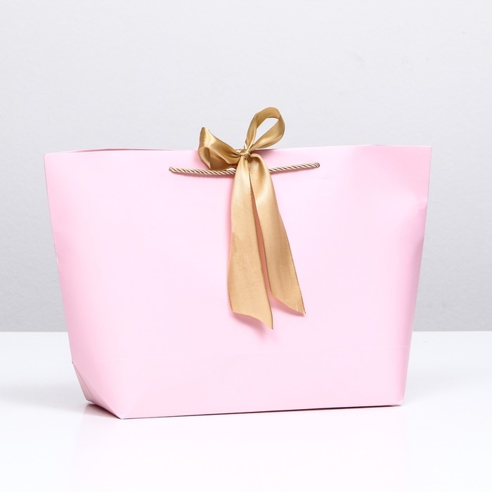 Пакет подарочный с лентой 30 х 27,5 х 12 см "Розовый"