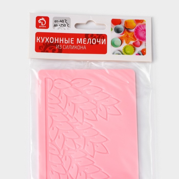 Коврик для айсинга Доляна «Листья», силикон, 37,5×8×0,1 см, цвет розовый