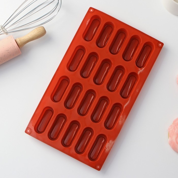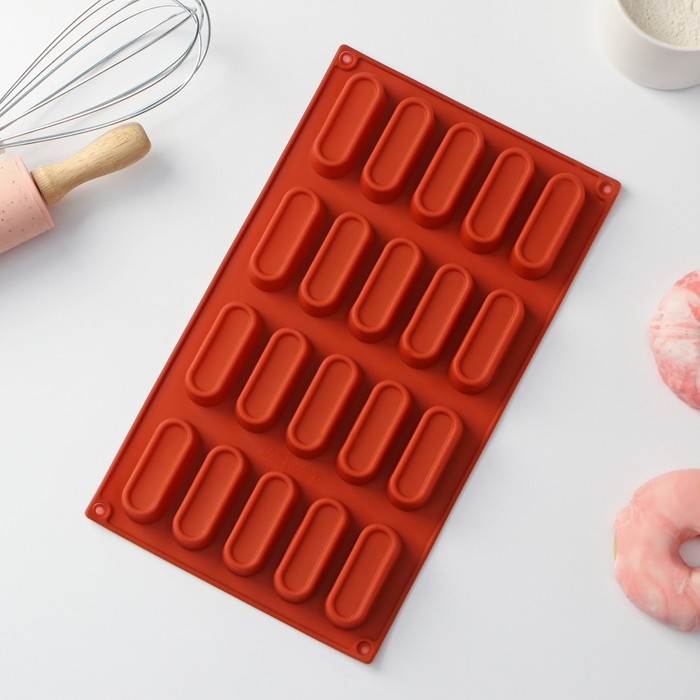 Форма для выпечки Доляна «Сладости.Эклер», силикон, 29×17×2 см (5,8×2,3×2 см), 20 ячеек, цвет коричневый