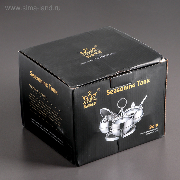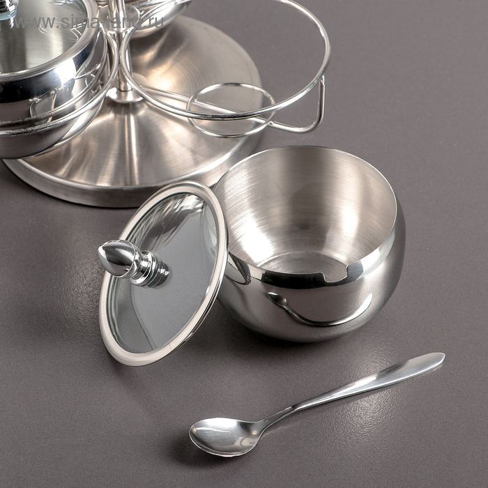 Набор сахарниц из нержавеющей стали, 340 мл, 19×14 см, на крутящейся подставке с ложками, 3 шт