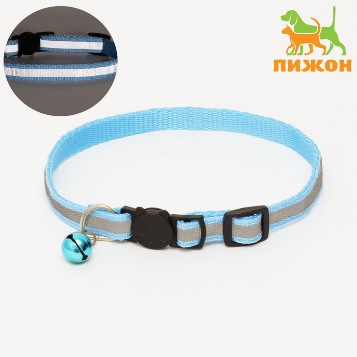 Ошейник кошачий светоотражающий, 19-32 х 1 см, голубой