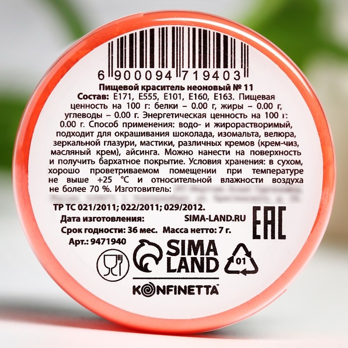 Краситель неоновый KONFINETTA, оранжевый, 7 г.