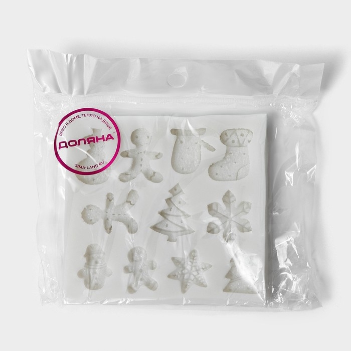 Молд новогодний Доляна «Новый год», силикон, 8,7×8,3×0,7 см, цвет серый