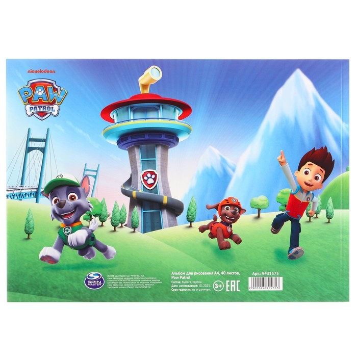 Альбом для рисования А4, 40 листов 100 г/м², на склейке, Щенячий патруль