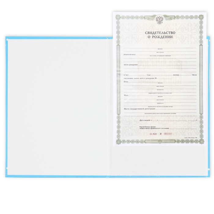 Папка под свидетельство о рождении имеет удобный файл внутри, который защитит первый в жизни документ малыша от повреждений.