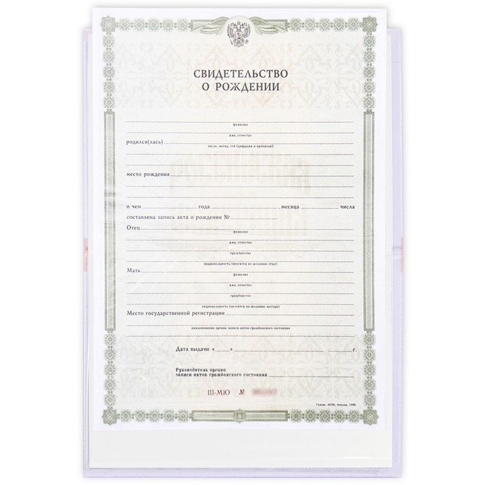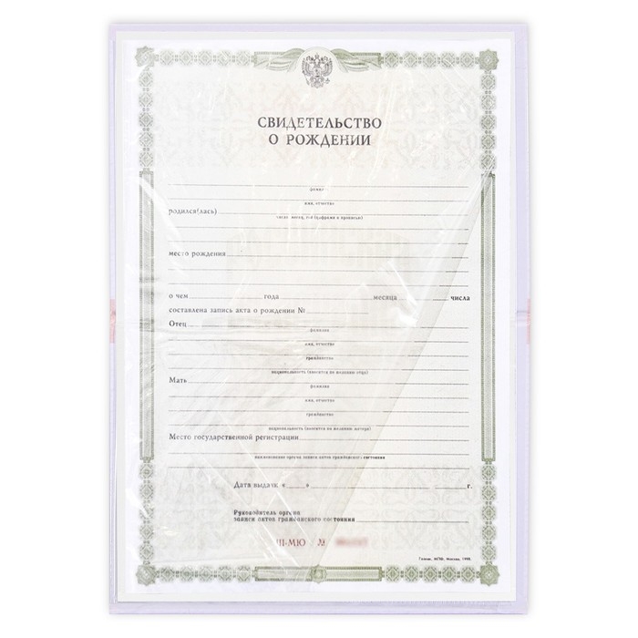 Папка под свидетельство о рождении имеет удобный файл внутри, который защитит первый в жизни документ малыша от повреждений.