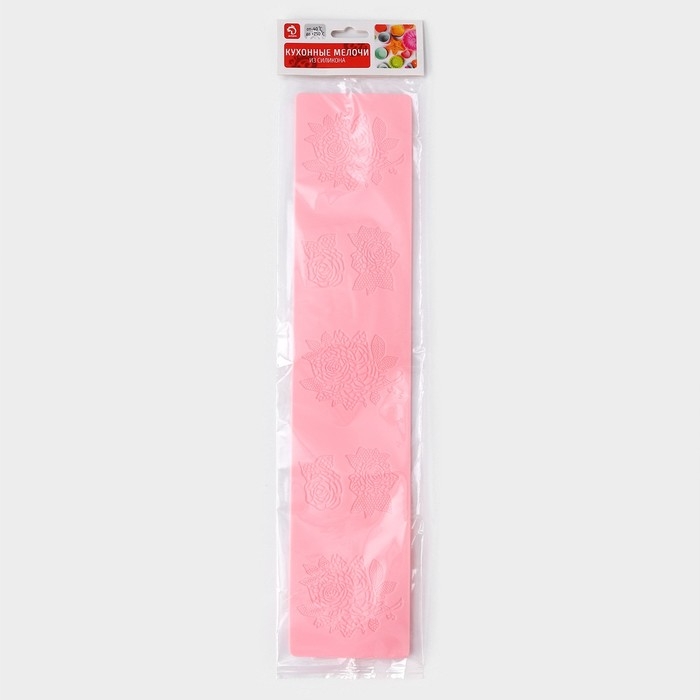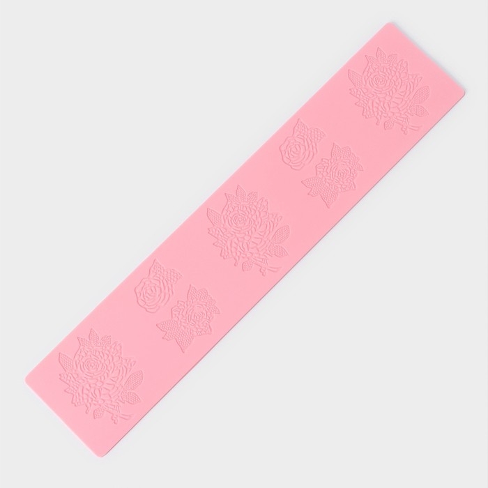 Коврик для айсинга Доляна «Розы», силикон, 37,5×8×0,1 см, цвет розовый