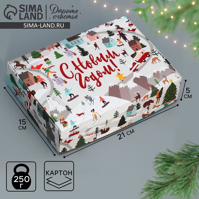 Коробка подарочная новогодняя складная «Новогодние истории», 21 х 15 х 5 см, Новый год