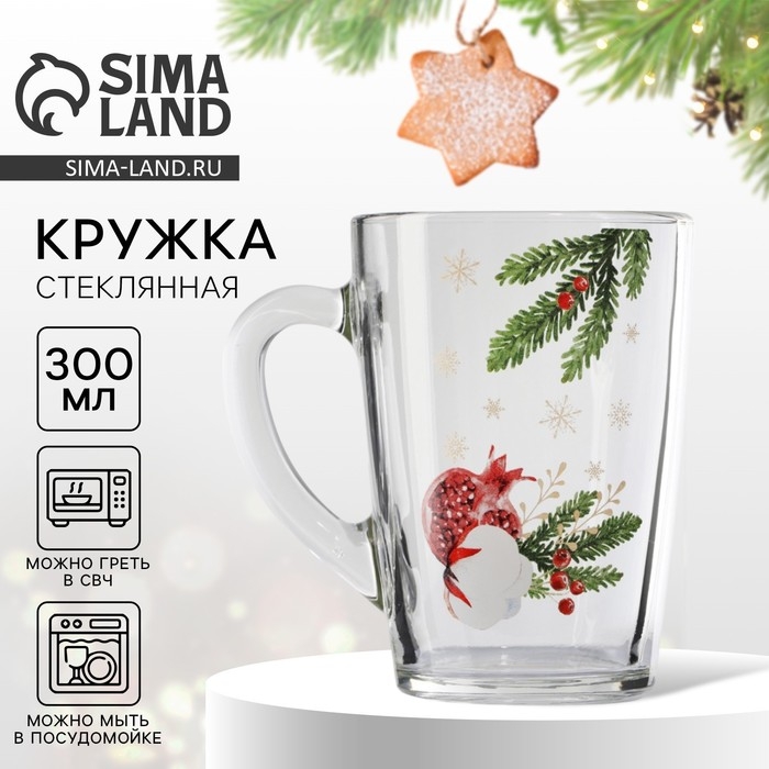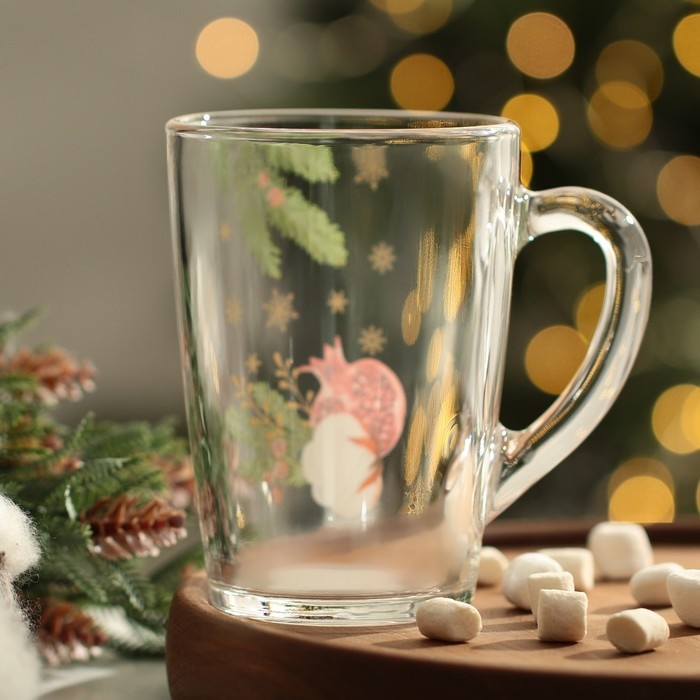 Новый год. Кружка стеклянная «Новогодний гранат», 300 мл