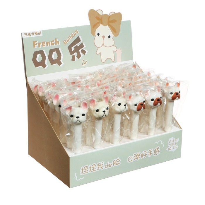 Ручка гелевая-прикол, стержень синий, мягкий корпус, Бульдог МИКС