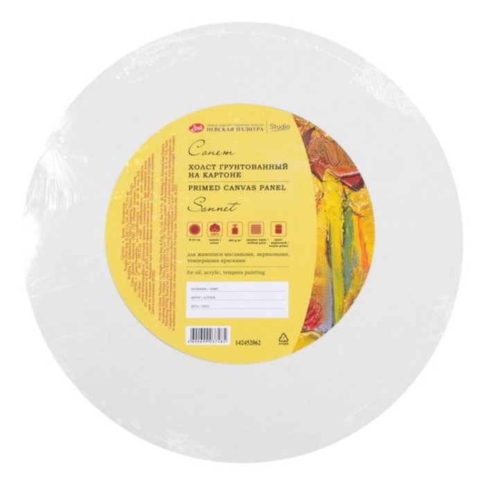 Холст на картоне хлопок 100%, круглый D-24 см, 3 мм, ЗХК "Сонет", акриловый грунт, среднее зерно, 142452062