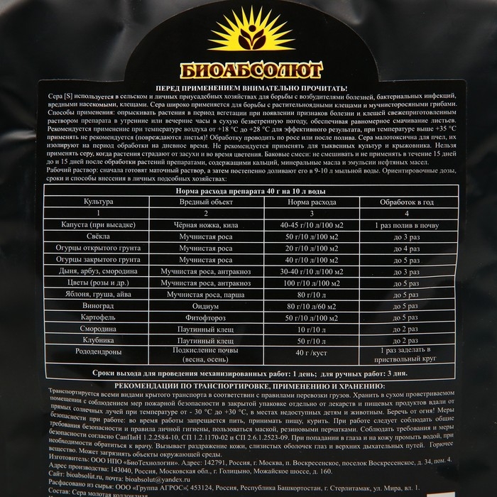 Сера коллоидная. Фунгицид, инсектоакарицид. Порошок