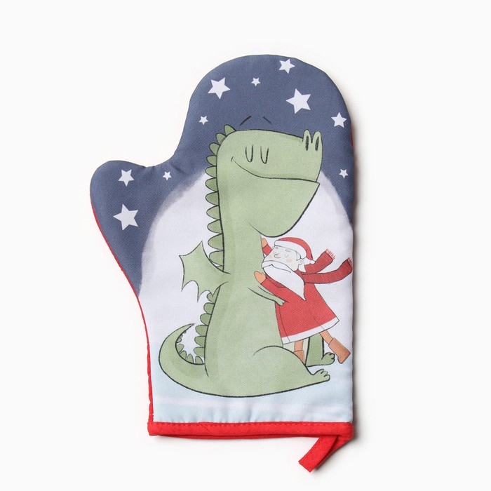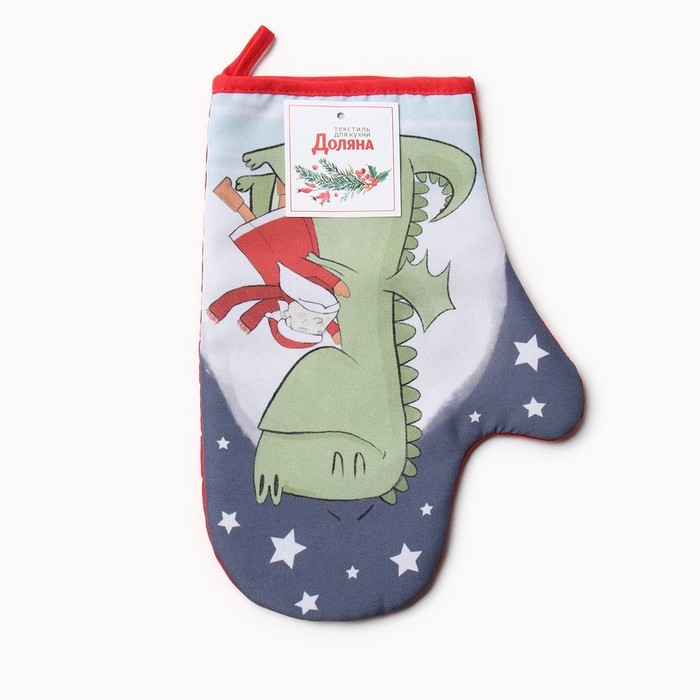 Новый год.Варежка-прихватка Доляна "Новогодние объятия" 20х28 см, 35% хл, 65% пэ, ватин 250 г/м2