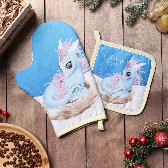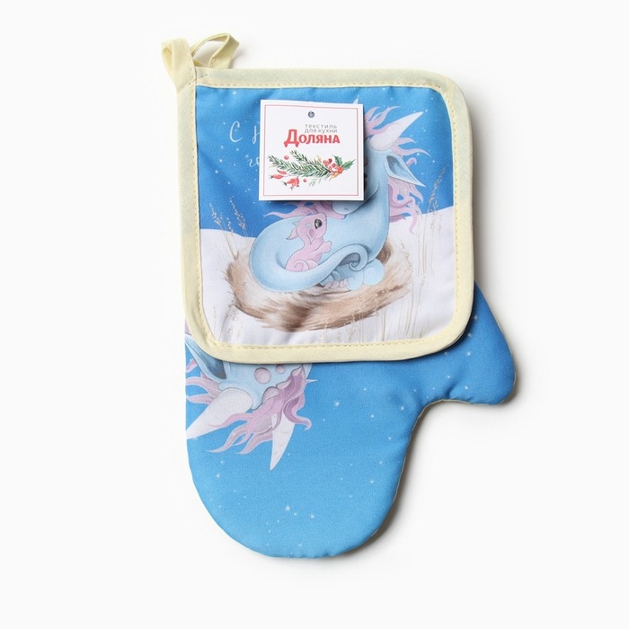 Новый год. Набор кухонный Доляна "Семейное счастье": варежка 20х28 см, прихватка 17х17 см, 35% хл, 65% пэ