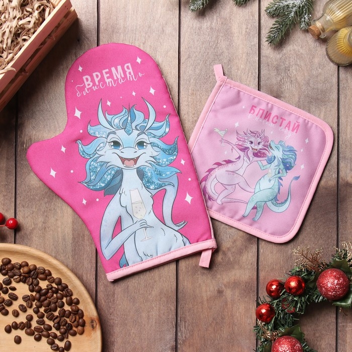 Новый год. Набор кухонный Доляна "Блистай": варежка 20х28 см, прихватка 17х17 см, 35% хл, 65% пэ