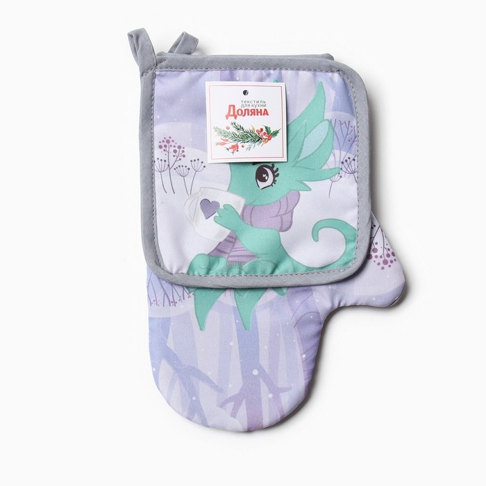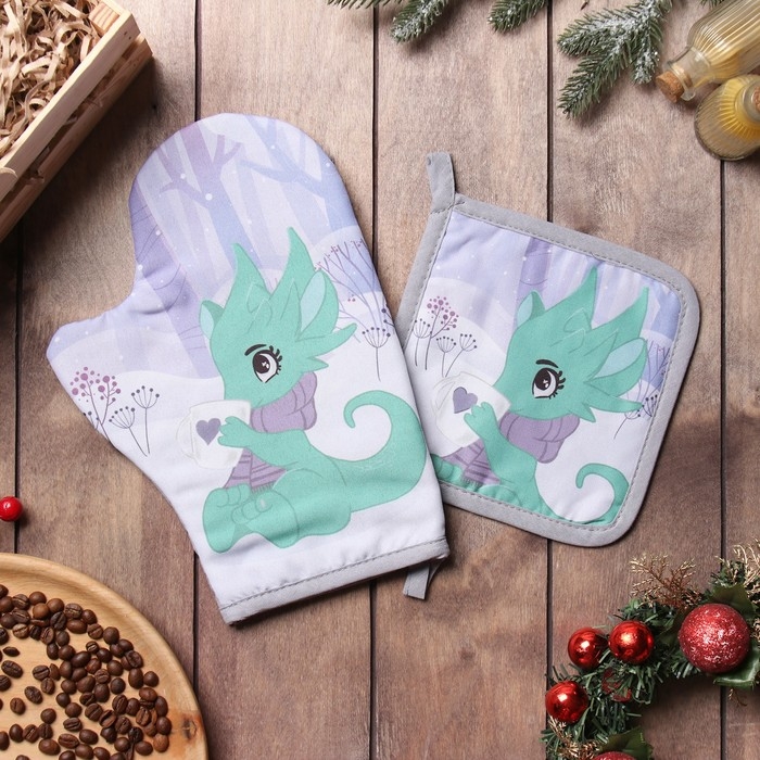 Новый год. Набор кухонный Доляна "Чаепитие в лесу": варежка 20х28 см, прихватка 17х17 см, 35% хл, 65% пэ
