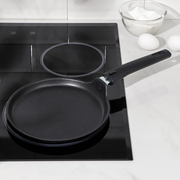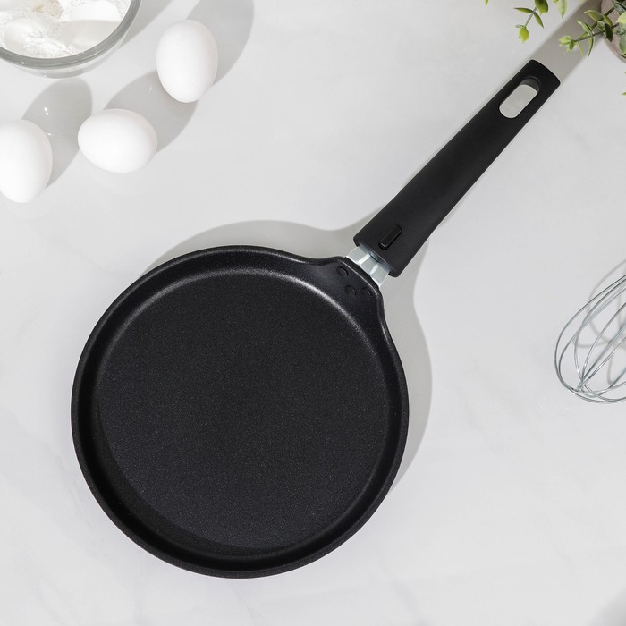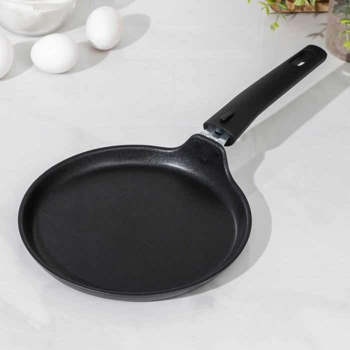 Сковорода блинная «Традиция», d=20 см, съёмная ручка, антипригарное покрытие, цвет чёрный