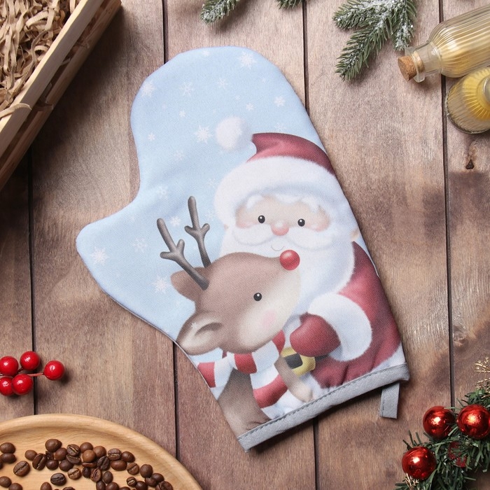 Новый год.Варежка-прихватка Доляна "Новогоднее волшебство" 20х28 см, 35% хл, 65% пэ, ватин 250 г/м2