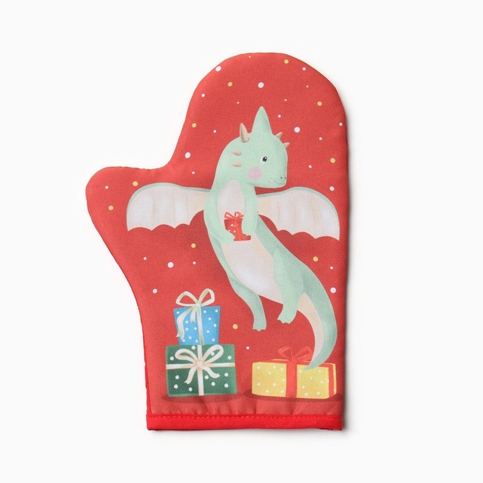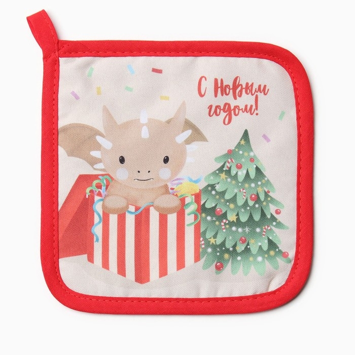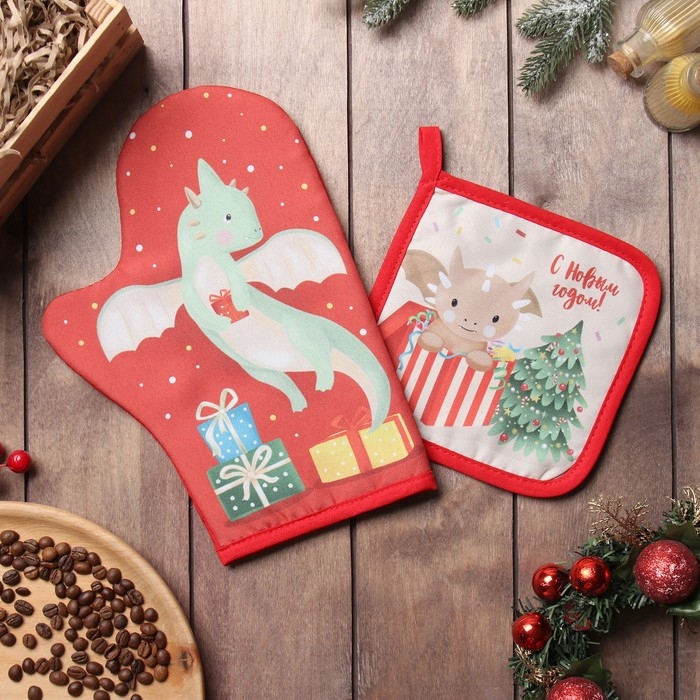 Новый год. Набор кухонный Доляна "Подарок": варежка 20х28 см, прихватка 17х17 см, 35% хл, 65% пэ