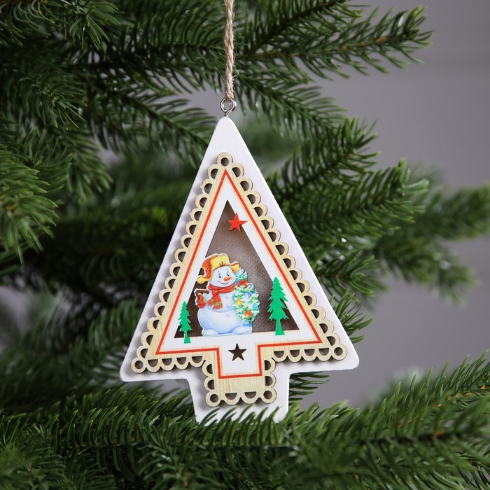 Ёлочная игрушка «Снеговик», от батареек, свечение тёплое белое