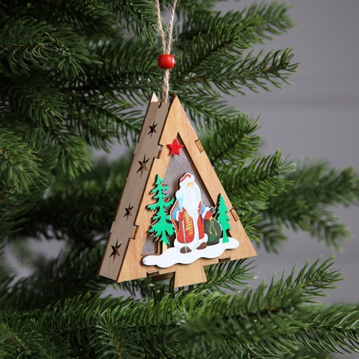 Ёлочная игрушка «Ёлочка с Дедом Морозом», от батареек, свечение тёплое белое