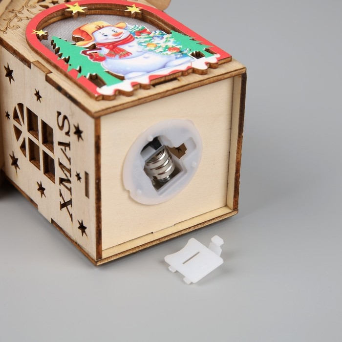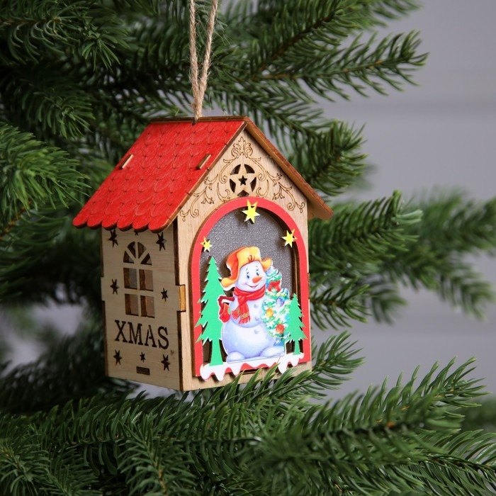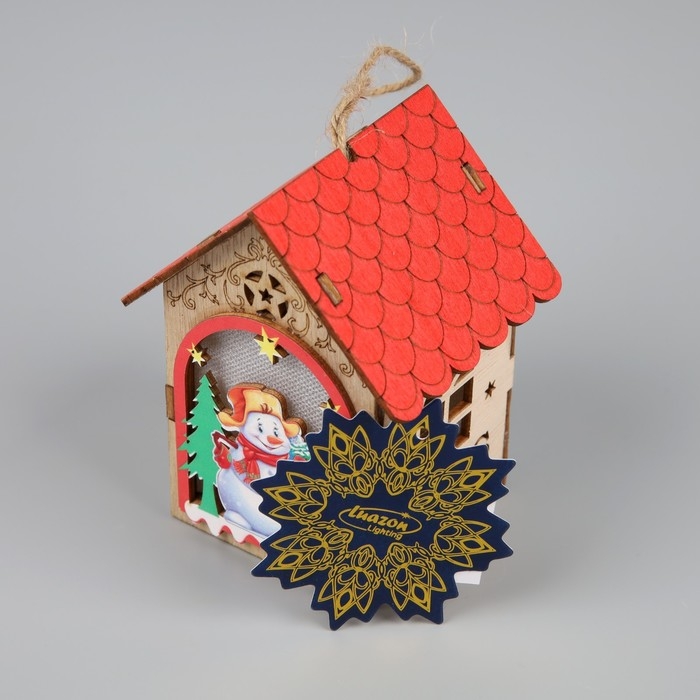 Ёлочная игрушка «Домик со снеговиком», от батареек, свечение тёплое белое