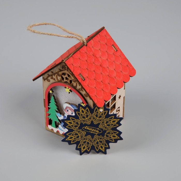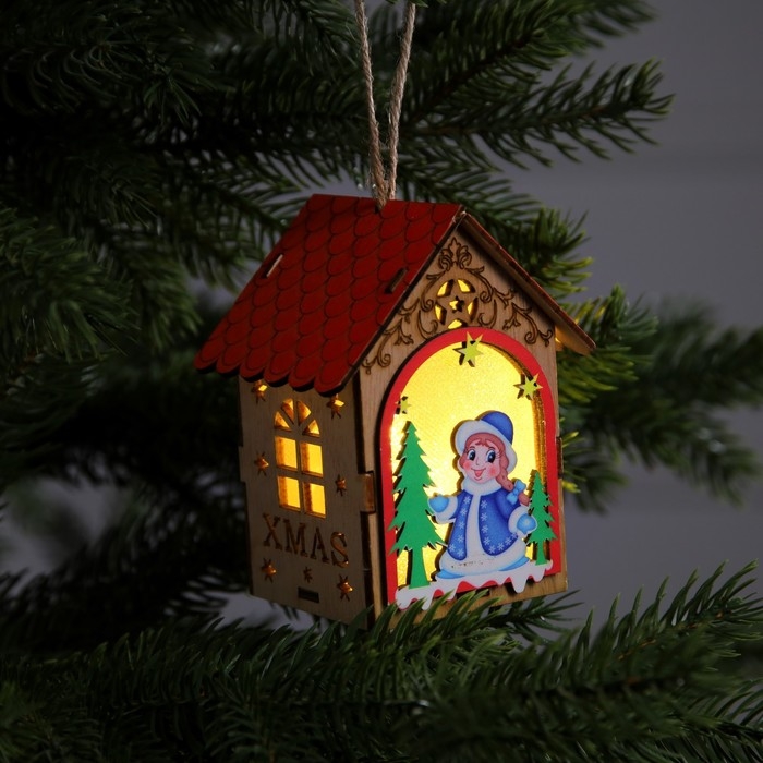 Ёлочная игрушка «Домик со Снегурочкой», от батареек, свечение тёплое белое