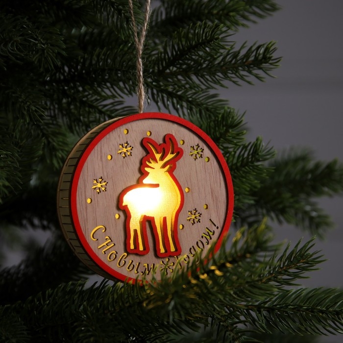 Ёлочная игрушка «С новым годом», от батареек, свечение тёплое белое
