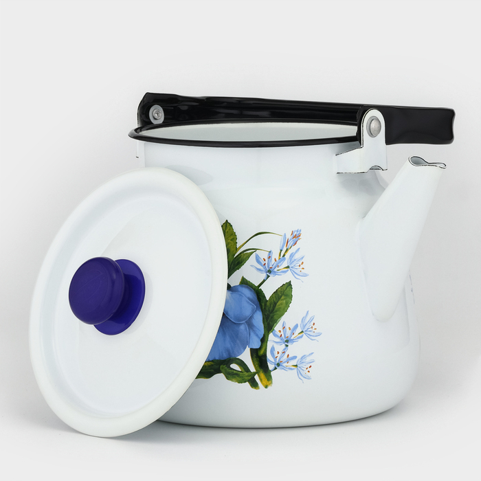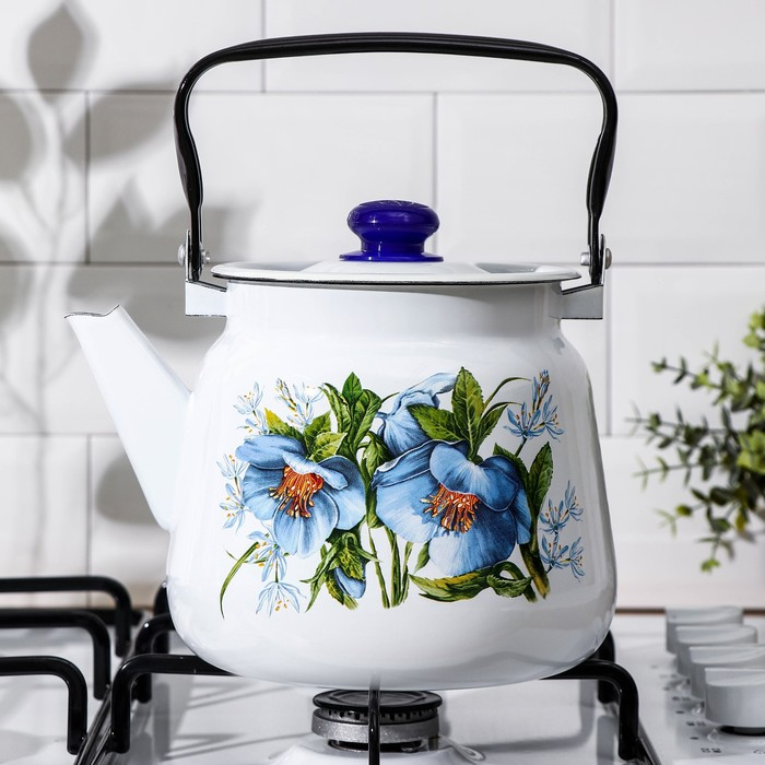 Чайник с кнопкой «Цветы синие», 3,5 л, индукция, цвет белый