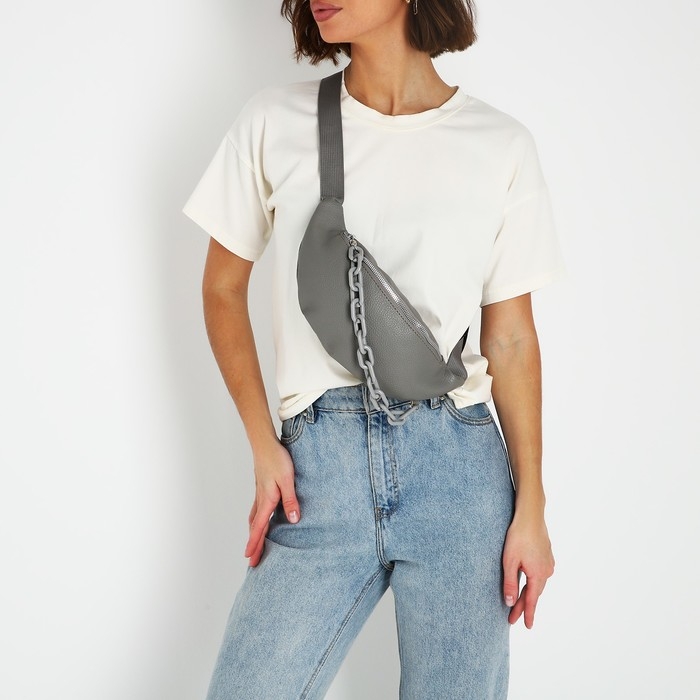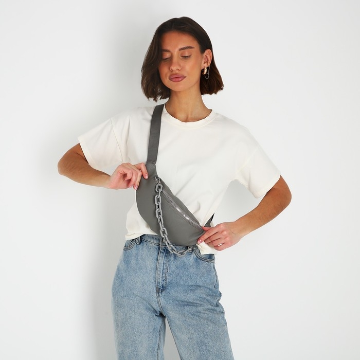 Поясная сумка на молнии, цвет серый